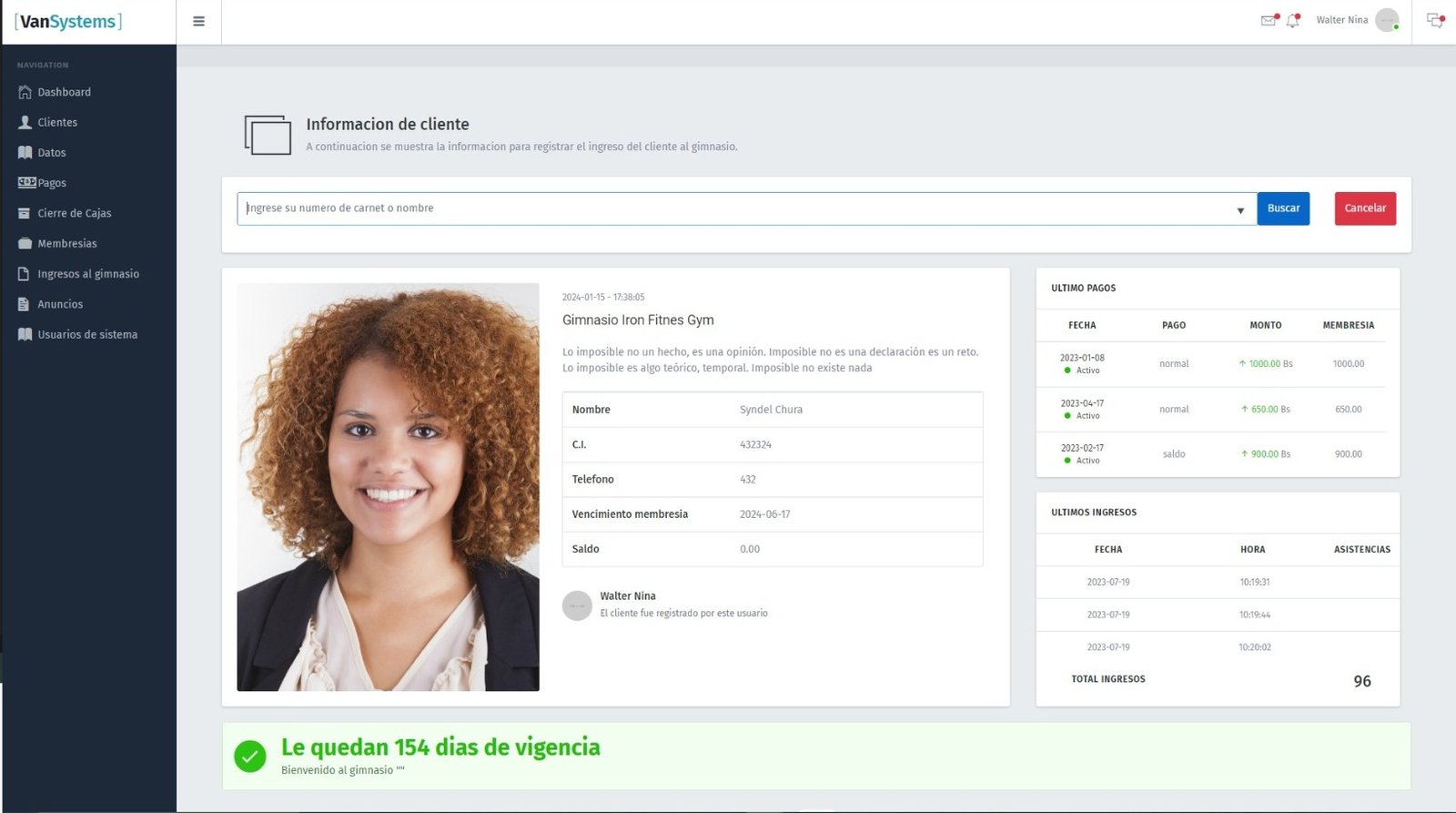Revisa los dias de membresia que le queda a tus clientes